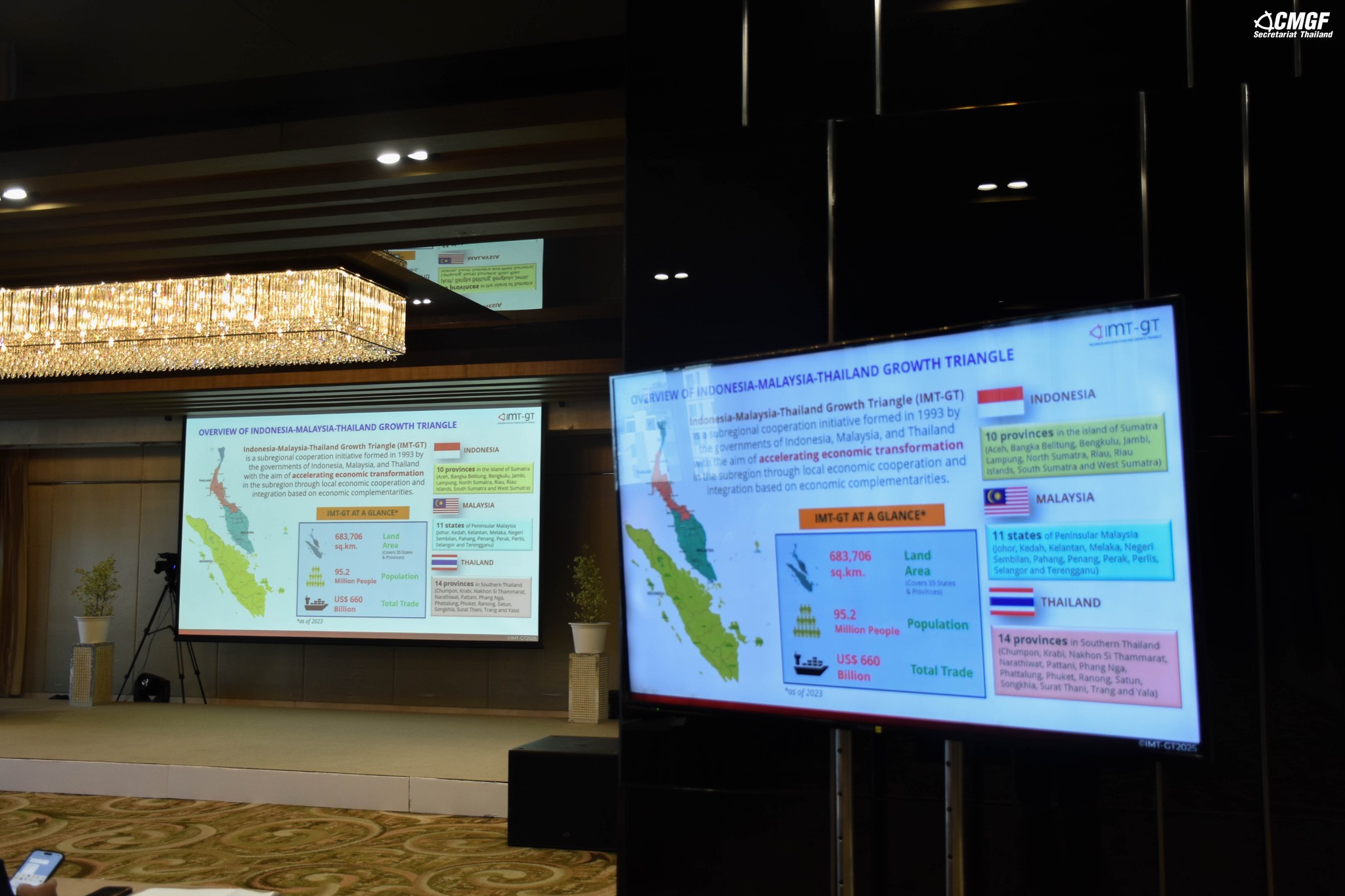 เมื่อวันที่ 30 กรกฎาคม 2568 สำนักงานฝ่ายเลขานุการฯ CMGF ร่วมกับศูนย์ประสานงานความร่วมมืออนุภูมิภาคแผนงาน IMT-GT (CIMT) นำโดย คุณดวงฤทัย สุรศักดิ์จินดา รองผู้อำนวยการศูนย์ประสาน CIMT ได้จัดการประชุมเชิงปฏิบัติการการพัฒนาแนวระเบียงเศรษฐกิจ (Workshop on Familiarisation of IMT-GT Economic Corridors) ณ โรงแรมลี การ์เดนส์ พลาซ่า อำเภอหาดใหญ่ จังหวัดสงขลา โดยมีผู้แทนจากหน่วยงานภาครัฐ ภาคเอกชน สถาบันการศึกษา และภาคีความร่วมมือการประชุมเริ่มต้นด้วยการบรรยายในหัวข้อ “ความสำคัญและผลการทบทวนและประเมินแนวระเบียงเศรษฐกิจ (IMT-GT Economic Corridors)” โดย คุณดวงฤทัย สุรศักดิ์จินดา รองผู้อำนวยการ CIMT และ ดร.วรรณสินท์ สัตยานุวัตร์ จากสถาบันวิจัยนโยบายเศรษฐกิจการคลัง ตามด้วยการนำเสนอ “มุมมองภาคเอกชนต่อการพัฒนาแนวระเบียงเศรษฐกิจภายใต้แผนงาน IMT-GT” โดย คุณสุธีร์ สธนสถาพร ผู้อำนวยการสำนักงานคณะกรรมการร่วมภาคเอกชน 3 สถาบัน (กกร.)